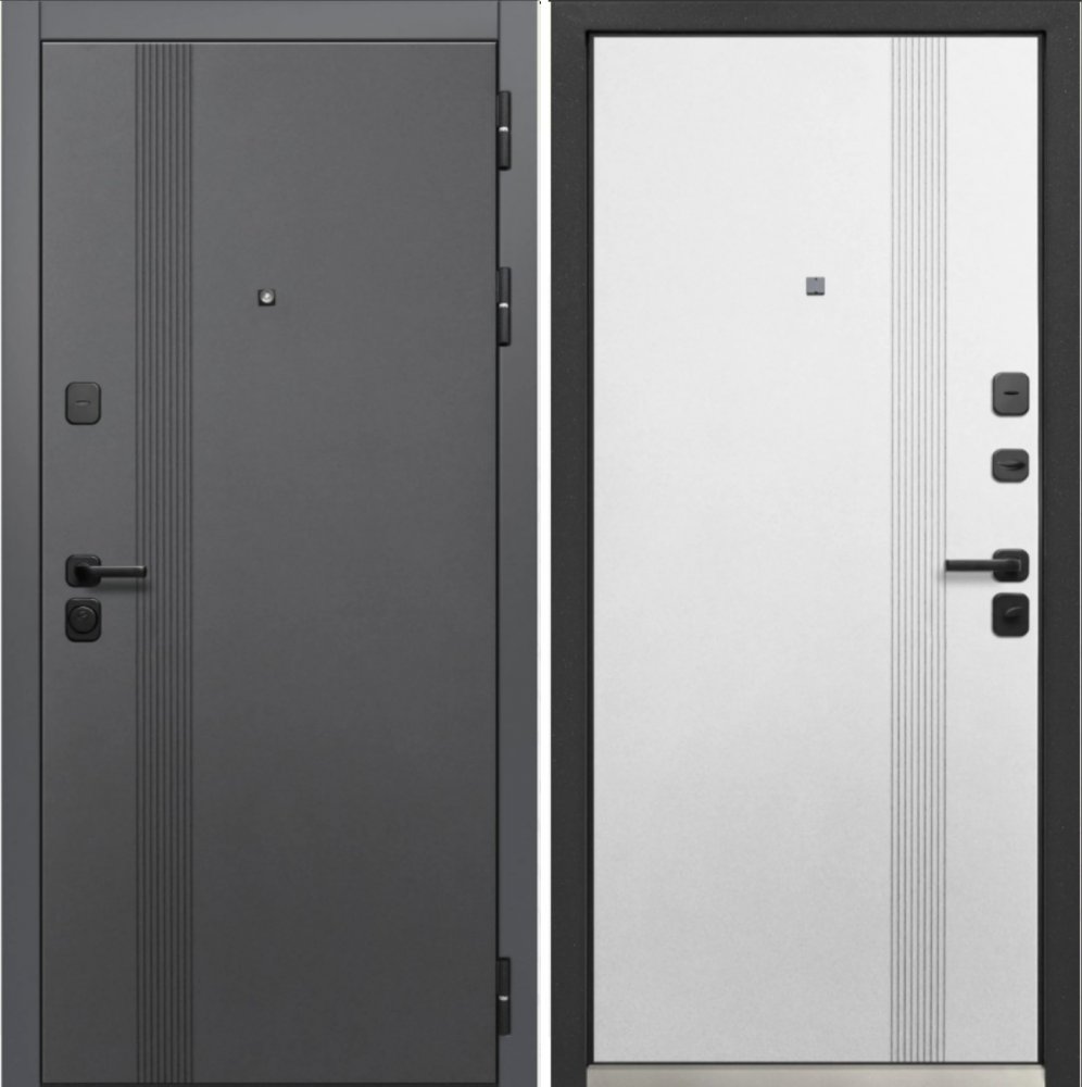 Металл: Порошково-полимерное покрытие, цвет Муар черный Отделка снаружи: лист стали + ламинированная МДФ панель 12мм , цвет Сатин графит