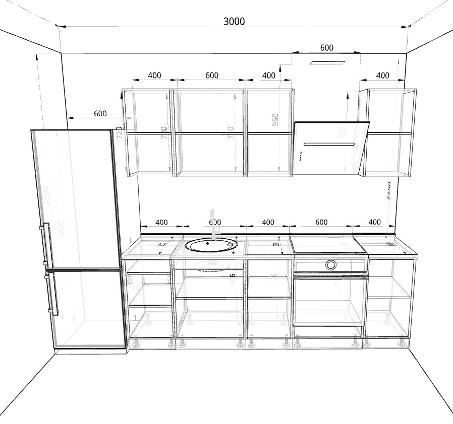 Кухонный гарнитур Британика GKK1031 не должен иметь следов сборки и эксплуатации;