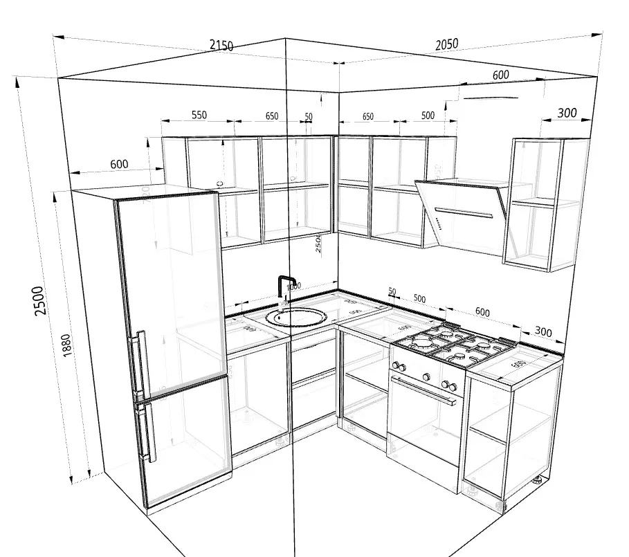 • Глубина нижнего корпуса 500 мм Удобные кухни